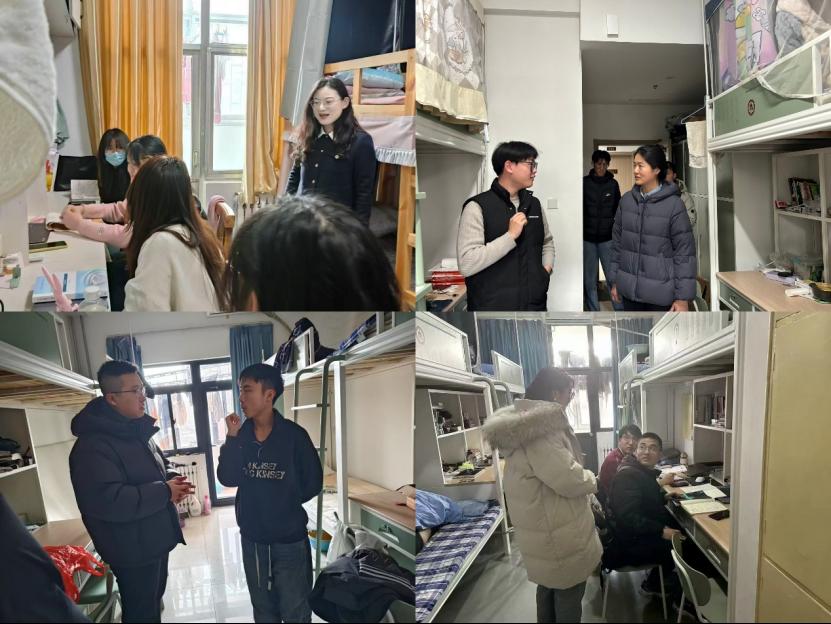 党委书记刘进、院长王培合、学团工作负责人杜晨曦,各年级辅导员深入学生宿舍,开展走访工作。