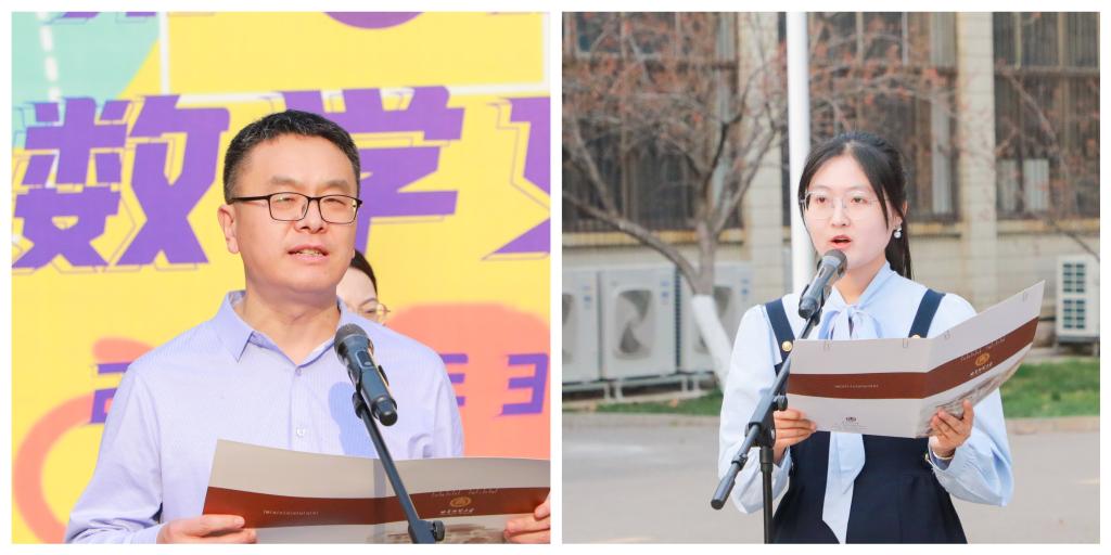 学生代表刘美琪结合自身的学习、竞赛及保研山东大学的经历,分享了自己学习数学的感悟。最后,领导老师于主题牌匾前倾注彩砂,开幕式在全体师生的热烈掌声中落下帷幕。