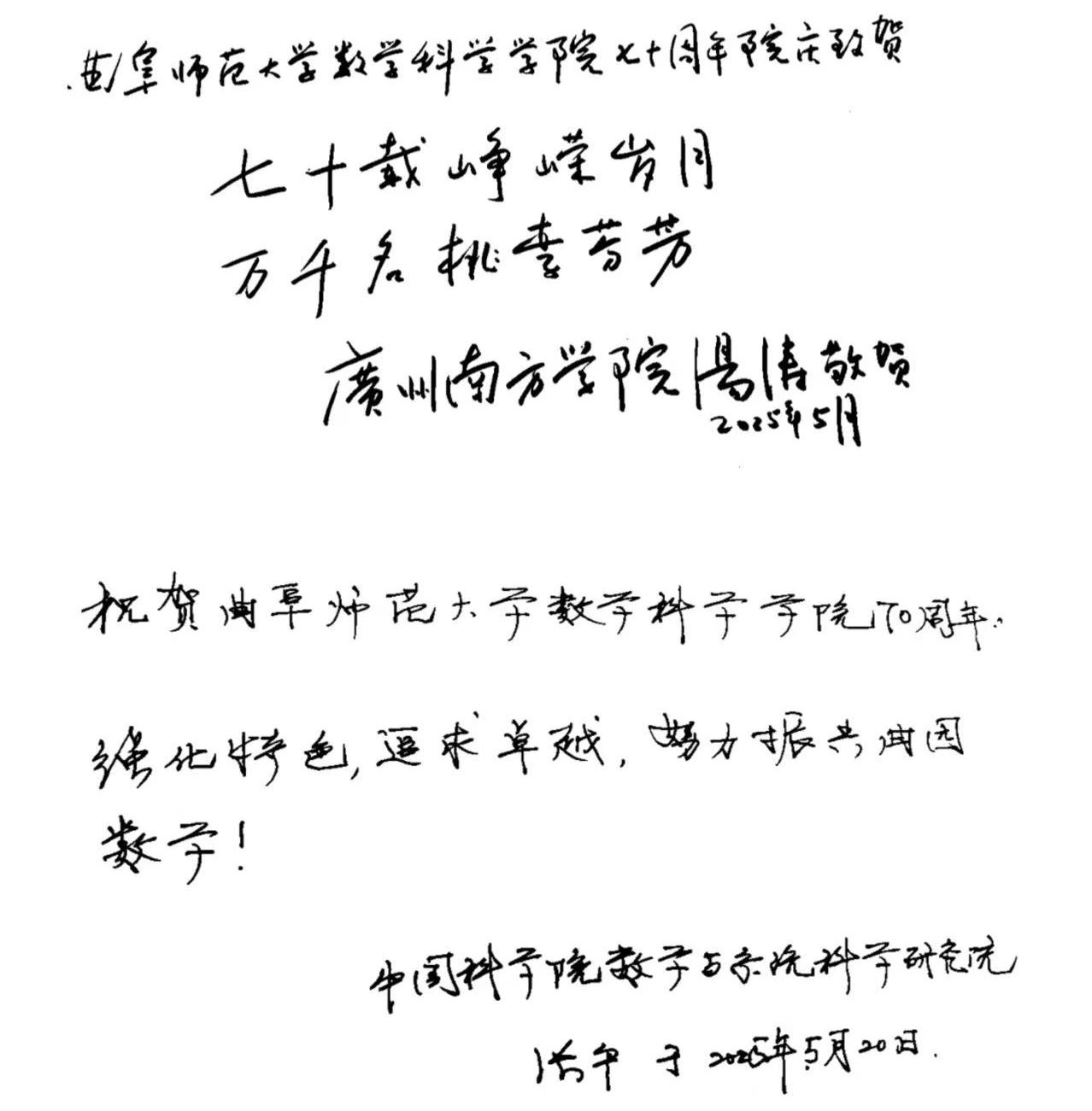 、澳大利亚教育集团、菏泽第一中学等单位发来的贺信。大会播放了院庆主题视频《数韵七秩,芳华待灼》,回顾了学院从1955年建系至今的奋斗历程。