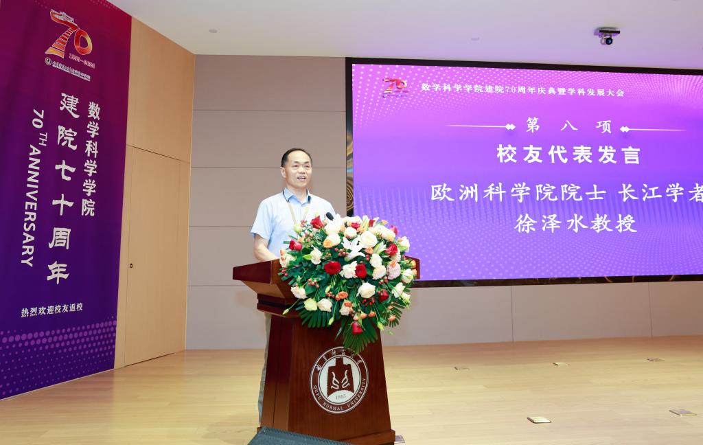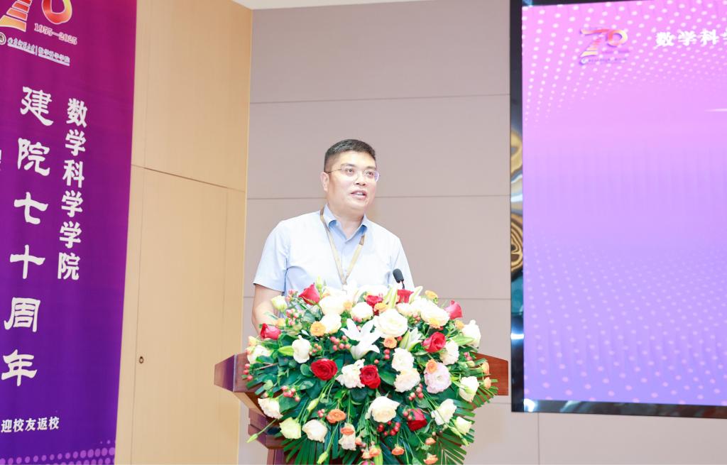 会上,学校党委副书记、校长张洪海在讲话中指出,数学学科作为建校基石之一,底蕴深厚,从建校初期获毛主席赞扬的 “公社数学”,到服务国家建设荣获国家科技进步特等奖的运筹学 “两法”, 众多学术大家在此传道授业,奠定了坚实学术根基。张洪海强调,数学学科实现从专修科到完备人才培养体系的跨越,稳居 ESI 全球前 1%,为学校和山东省数学及相关学科发展贡献卓越,还培养出以郭雷院士为代表的大批精英人才,广受赞誉。张洪海要求数学学科立足现实,展望未来,要聚焦立德树人,在“教育强国、曲师何为”的时代答卷中展现“数学作为”;要勇担创新使命,力争产出更多原创性、标志性成果,为破解关键科学难题贡献“数学方案”;要擦亮学科品牌,为国家战略和区域高质量发展持续贡献“数学力量”,号召全体师生、校友共同谱写曲园数学新的璀璨篇章。