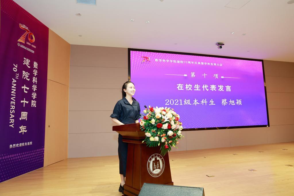 在校生代表蔡旭颖表达了对学院的热爱与对未来的憧憬,她立志以优秀校友为榜样,努力学习,传承学院优良学风,为学院发展贡献青春力量。