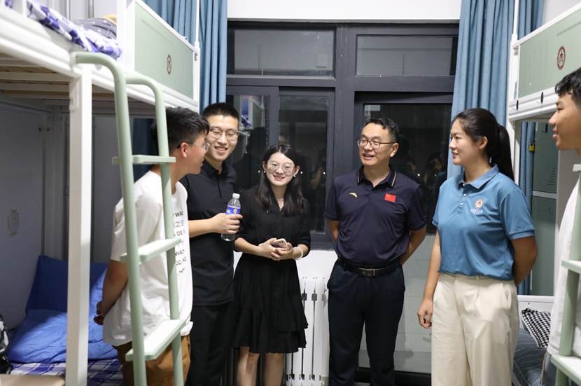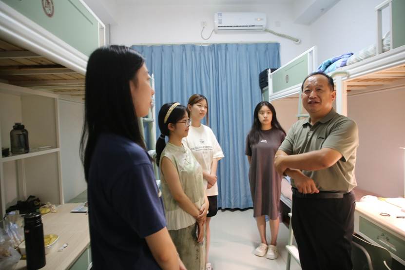 院讯(通讯员:马文熠 摄影:延云聪、马文熠)为切实掌握2025级新生住宿情况,倾听新生诉求,帮助新生更好地融入校园生活,9月6日傍晚,学院党委书记刘进、院⻓王培合、学团工作负责人杜晨曦和2025级辅导员高思明、吕瑞源深入全体新生宿舍开展走访慰问活动,为初入校园的同学们送去关怀与温暖。