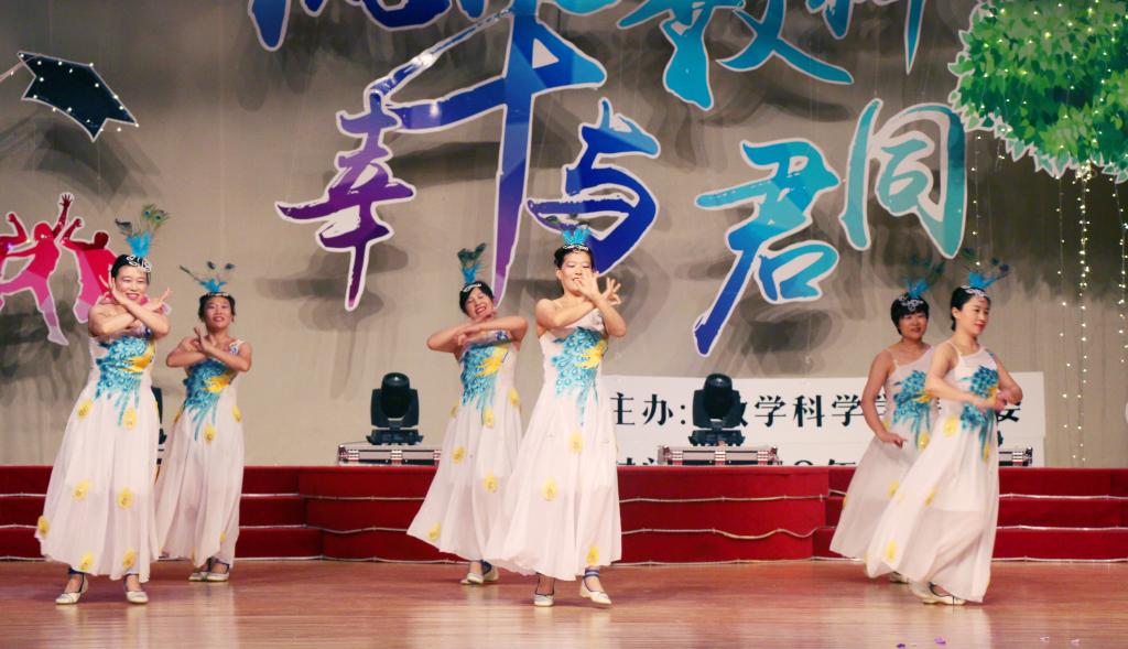徐润、张克梅等六位老师为大家带来了舞蹈表演《美丽的地方》,以舞蹈的形式表达了对2014级全体同学的美好祝愿,展现了师生之间深深的情谊,同学们纷纷为老师们精彩的表演呐喊欢呼。晚会最后,在歌曲《友谊地久天长》的优美旋律中,全体表演者走上舞台,向大家挥手告别,晚会圆满结束。