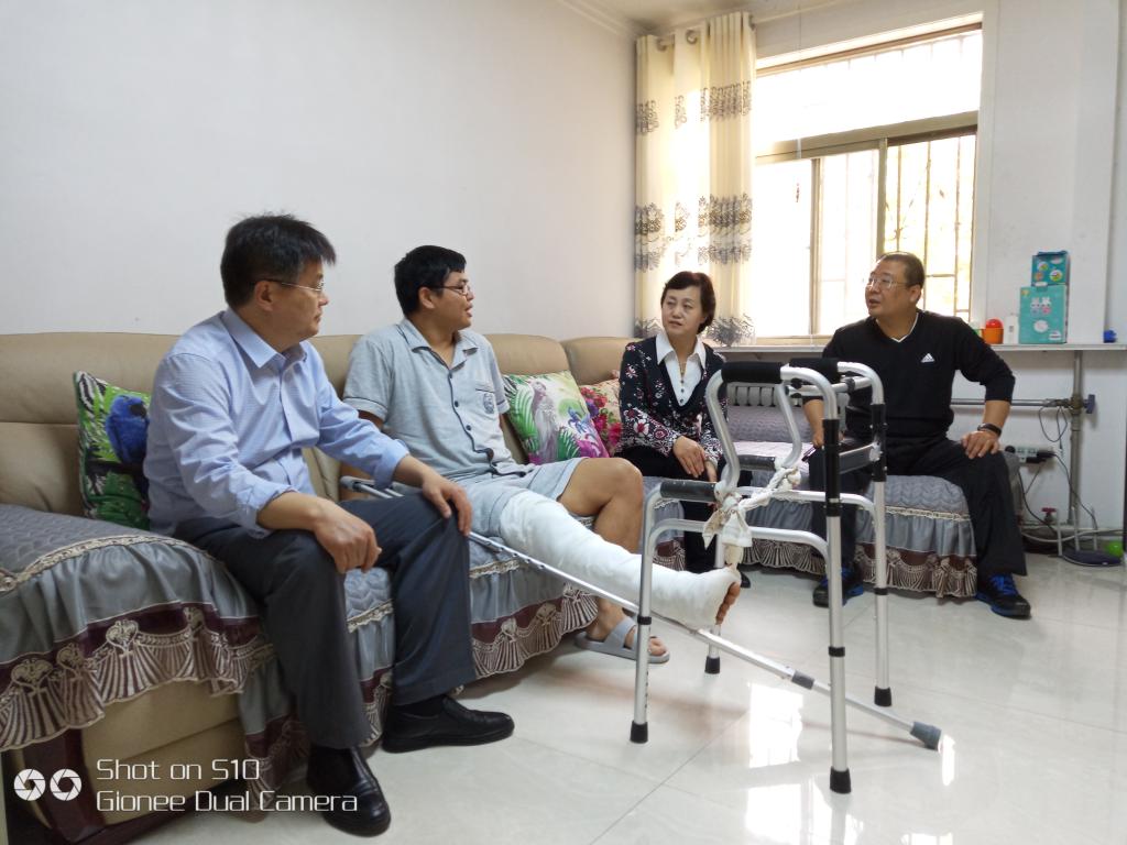 受伤教职工陈全国老师,送去了校工会、学院分工会和广大教职工的亲切关怀和美好祝福。
