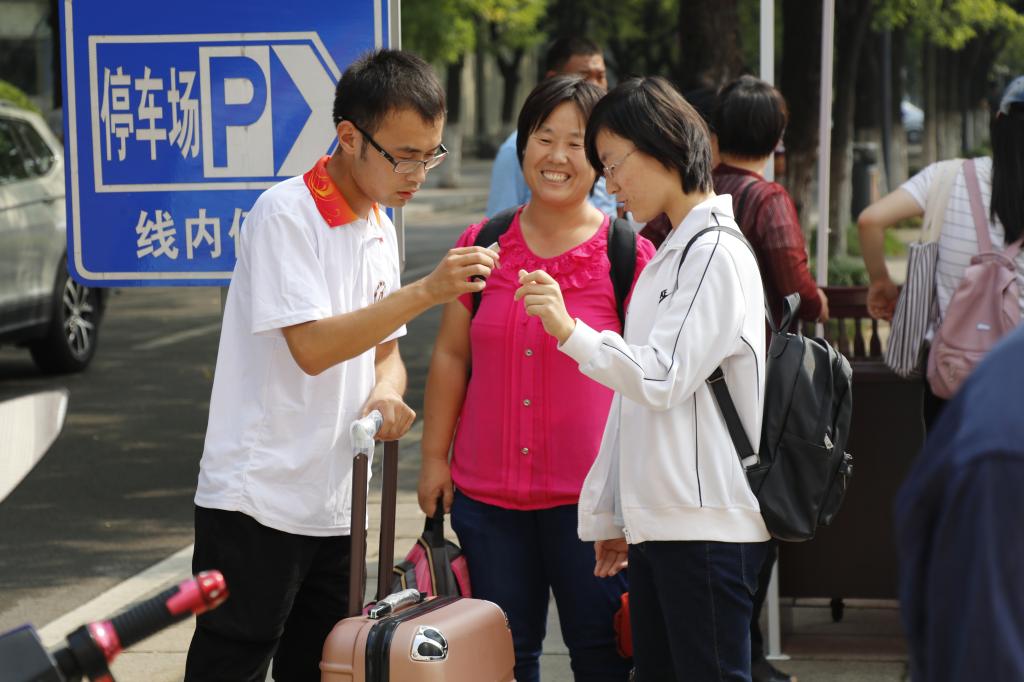 报到处的党员先锋队负责迎接报道的新生,在帮助新生完成报道手续后。他们便微笑着迎上前去,接过家长手中沉重的行李,引领新生前往宿舍。引导途中,他们更是耐心详细地向新生和家长们介绍学校的优良环境和悠久历史。此外,新生咨询服务处的志愿者们耐心回答问题,为广大新生和家长答疑解惑,形成了有问必答,热情服务的良好氛围。为避免有些新生夜间到校,91黑料
