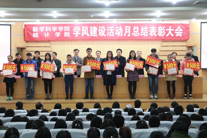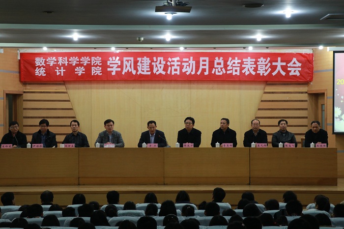 数学学科入选山东省一流学科表示了热烈的祝贺。辛校长指出,学风建设是重中之重,是需要全体师生共同参与的工作。针对学风建设工作的开展,他与大家分享了“读书使人智慧,学习成就未来,知识回报社会”几点思想和主张,希望同学们向上向善,刻苦学习,贡献社会,热爱祖国。颁奖环节中,各位领导老师为本次学风建设活动月获奖集体和个人颁奖,鼓励大家再接再厉,再创辉煌。大会最后,学院全体学生面向领导和老师庄严宣誓:诚实守信,积极备考,严守考纪,拒绝作弊。
