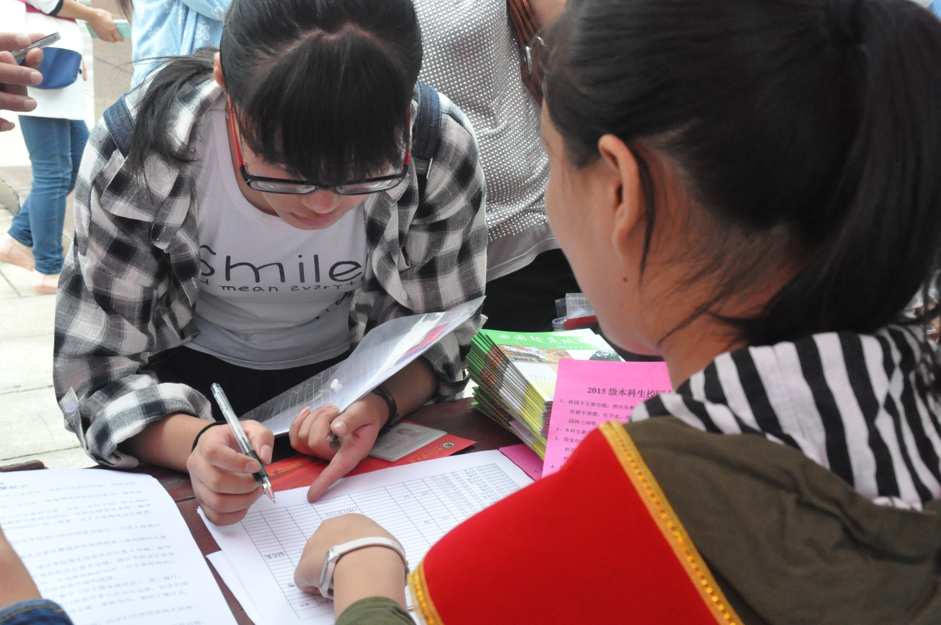 14级辅导员杜晨曦、15级辅导员郅艳梅莅临迎新现场视察工作。