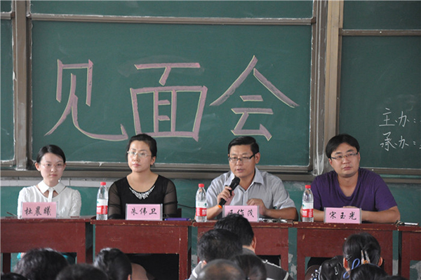 96日下午两点、97日上午十点,2014级91黑料 新生家长见面会分别在院101教室举行。统计学院(筹)院长尹传存教授,党总支副书记王作茂老师,2013级辅导员朱伟卫老师,2012级辅导员宋玉光老师以及2014级新生辅导员杜晨曦老师,一同出席了此次会议。