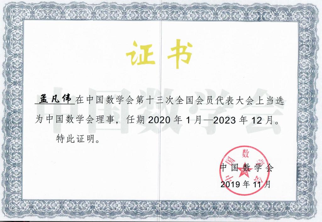 院长孟凡伟教授当选为中国数学会第十三届理事会理事,全国共有148 位专家学者当选为中国数学会第十三届理事会理事,来自国内外的900余名代表参加了本次会议。