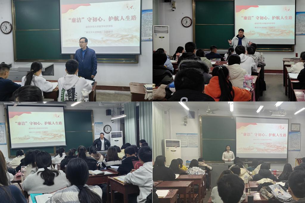 “廉洁文化进校园”不仅是个体的追求,更是整个校园的共同目标。本次班会,不仅陶冶了同学们的情操,还有效营造了知廉洁、讲文明、讲纪律、讲学习、讲奉献的校园文化氛围。今后,数学科学学院将继续开展形式多样的廉洁教育活动,让清廉文化沁润校园,让清正之风走进每一位数学学子心中。