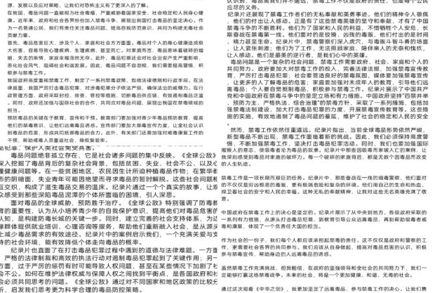 同学们在《中华之剑》和《全球公敌》中任选一部纪录片进行观看,并根据影片,用文字记录下自己最真实的感受。一幕幕触目惊心的画面,一个个因毒品而破碎的家庭,让同学们陷入了沉思,他们将内心的触动和思索化为文字,表达了对毒品的愤慨和抵制毒品的决心。其中孙逊的作品以细腻的笔触与坚定抵制毒品的决心获得一等奖,王苏宁和林思菡的作品以深入的禁毒活动分析和独特的思考获得二等奖,王淇、郑亚楠、薛嘉乐获得三等奖。