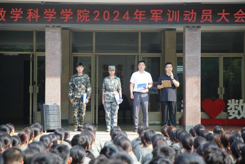 会上,辅导员荣斌作动员讲话,他首先向全体教官的到来表示感谢,并向参加军训工作的全体2024级数科新生们表示问候,他强调,军训不仅是站军姿、练队列,更重要的是练作风、练意志、练体格。他向全体参训学生提出要端正态度,统一思想的要求,并号召大家在军训期间团结协作,提倡集体优先,磨练合作的军训精神。随后教官代表赵淑慧向全体参训新生强调了军训要求,她从军训内容、内务标准、作息时间、成绩考核等方面介绍了本次军训的总体安排,提出既要积极参训,也要注意安全,劳逸结合。最后2024级新生代表李道正带领全体参训新生进行了军训入营宣誓,全体参训新生激情澎湃,斗志昂扬。
