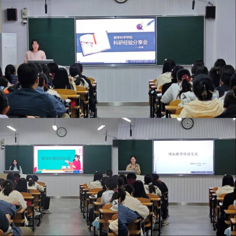 张诗从准备教学比赛的角度出发,为在座的同学们分享经验。她细致地介绍了初赛、决赛的准备要点及评委给出的建议。在谈及比赛选题时,她强调应以清晰的逻辑线作为筛选标准,同时建议大家提高板书质量,灵活设计教学语言。