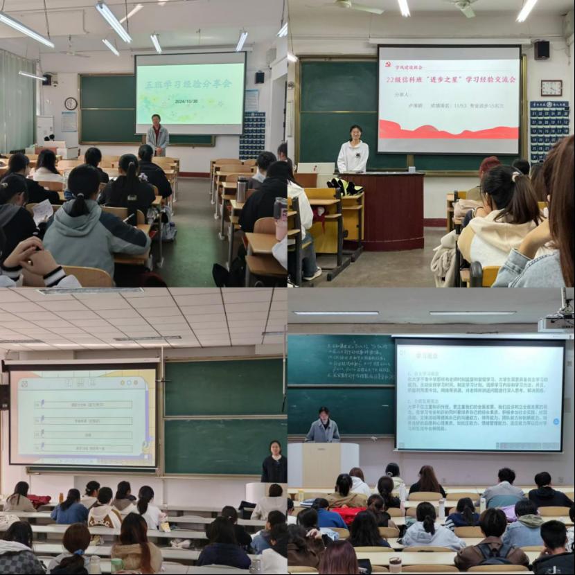 2022级、2023级各班于10月20日至10月28日在各班教室举办了优秀学生和进步之星经验交流会活动,各班级邀请本班级的成绩优秀学生和成绩显著进步的学生走上讲台,向大家分享学习经验。