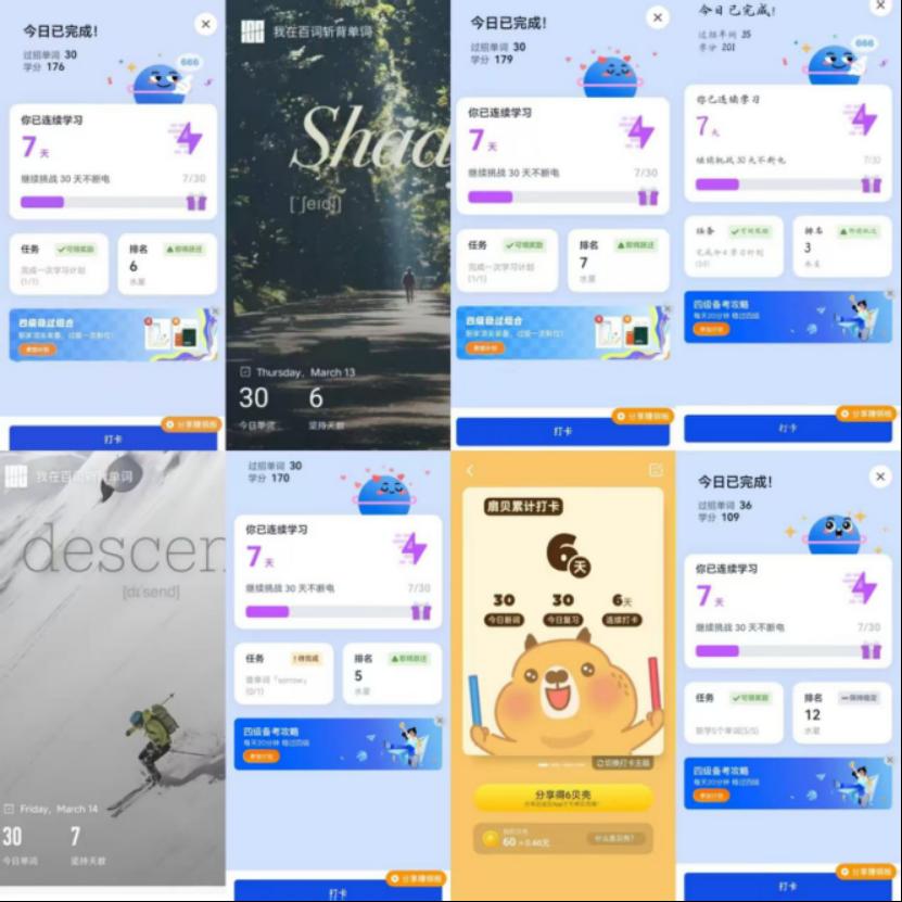 本次活动为期90天,要求打卡天数需要有连贯性;每日打卡单词需要为四六级范围,且数量不少于30个;打卡上传照片需要清晰显示出当天日期和学习的单词量。这一举措有效解决了同学们学习方式单一、缺乏互助监督以及备考效率低下等问题。同时,在晨读环节增加英语学习时间,极大地激发了同学们对英语学习的热情。