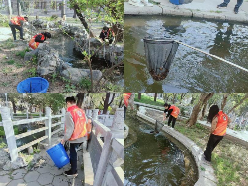 组织志愿者前往东校区图书馆前池塘,开展"清絮逐波·春日净池"志愿服务活动,聚焦解决水道堵塞、水质污染及水生生物生存威胁等问题,以实际行动守护校园生态环境。
