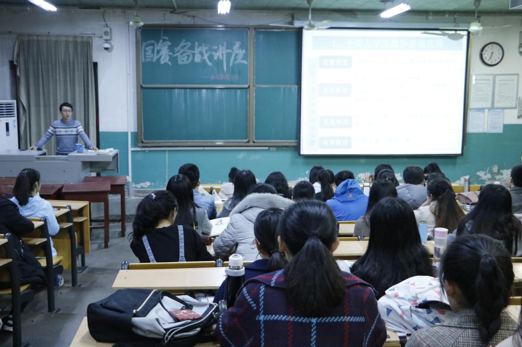 老师、同学都十分关注此项比赛。讲座上,丁一鸣以自身经验为切入点,就竞赛内容、竞赛形式、竞赛标准等多方面为大家进行了详细解读,在对历年竞赛题目的分析中,更是细致的介绍了竞赛所涉及到的数学方法、知识领域,为在场同学提供了一个明确的准备方向,最后,丁一鸣重点为大家介绍了有关数学建模的相关书籍及网站,希望大家积极备战,在比赛中都可以取得优秀成绩。