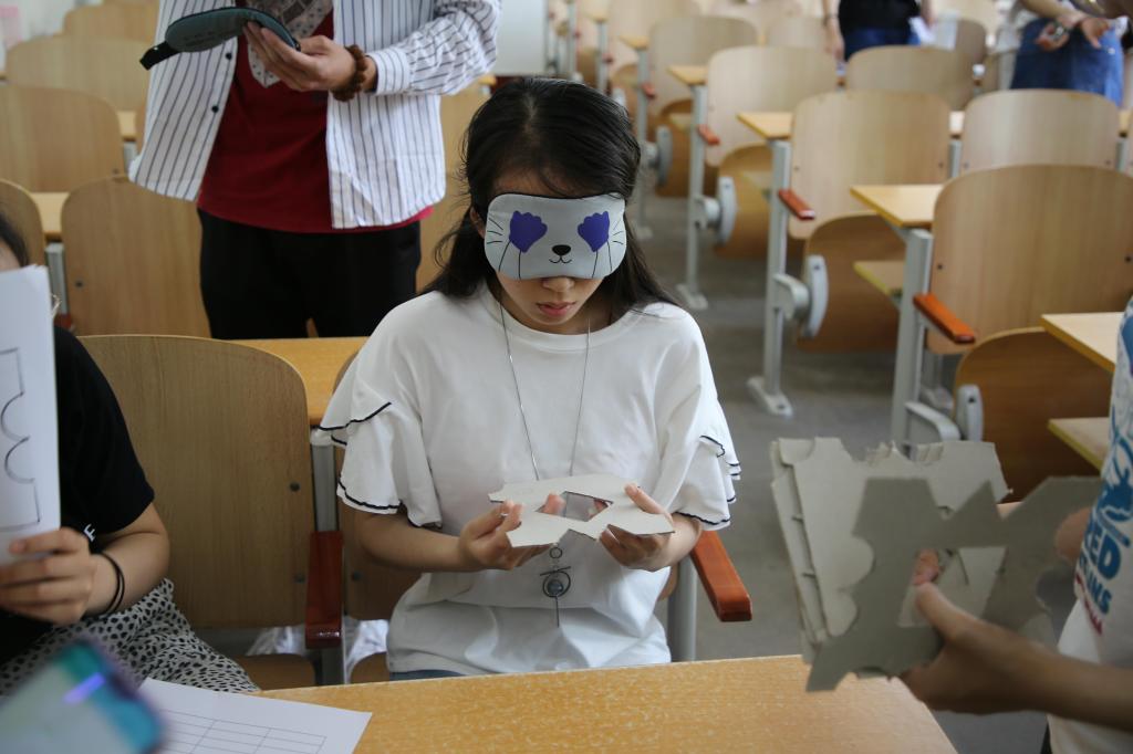 学生学习特点设计不同的游戏类型,针对记忆、思维、手速与熟练程度设计数学图形记忆找原图、蒙眼摸图形特点并找出原图、数学图形连连看、记忆与排序、说出数学图形名称等六大游戏类型。其中记忆环节中,同学们限时记忆数学图形的排列顺序,通过超强的记忆力在打乱的图形中将其找出并排列。蒙眼摸图环节,同学们通过触感将图形卡片的形状在脑海中形成印象,随后与图片快速匹配。连连看环节,同学们眼速与手速齐飞,在极短的时间内完成游戏,记录不断被刷新着,参赛选手纷纷表示自己在游戏中体会到了数学的创意、激情与乐趣。