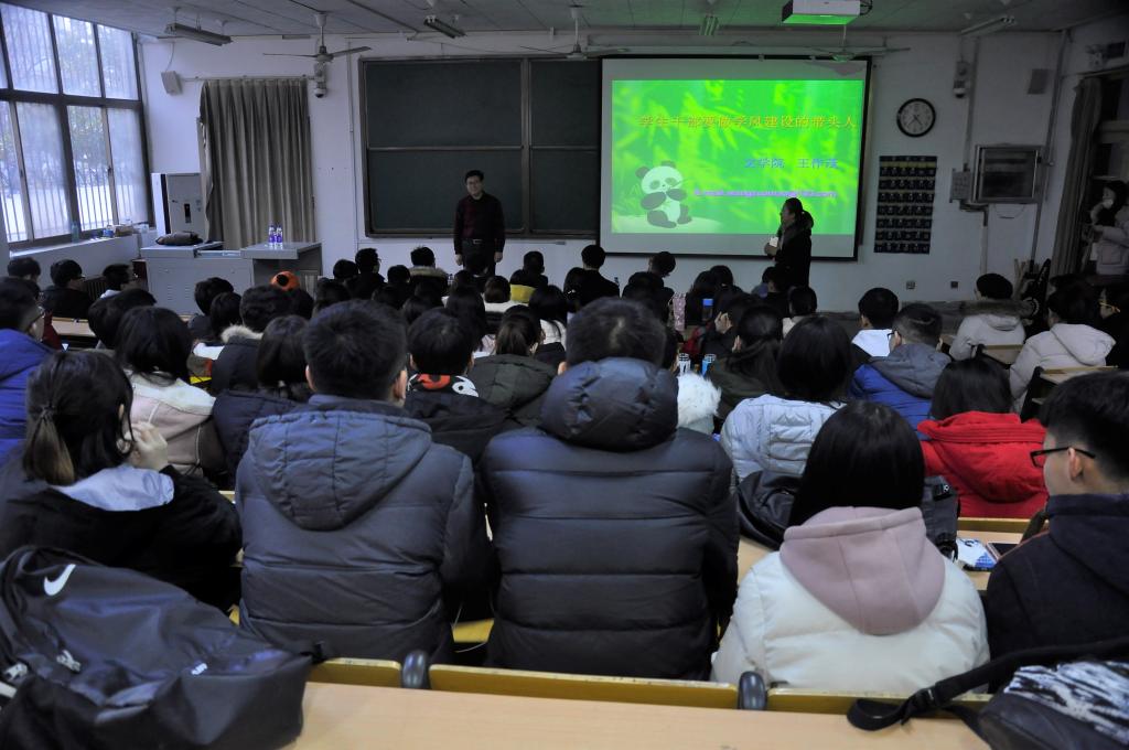 王作茂围绕学风建设这一主题,提出学生干部要坚持“一个中心,两个目标,三个习惯”的工作思路,寄言学生骨干要摒除不良风气,明确责任所在,既要注重提高个体素质,又要重视团队建设,坚持个人体与团队相统一,强化团队意识,促进团队内部运作,加强团队默契。