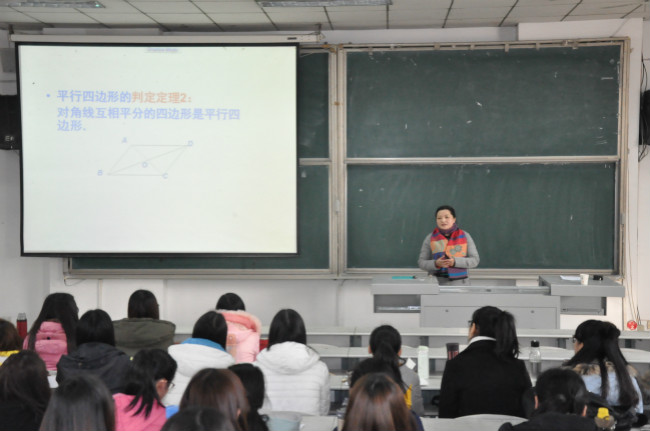 讲座伊始,刘老师进行了十分钟的模拟课堂授课,让同学们切实感受了中学数学课堂的教学氛围与教学技巧,并向大家展示了中学数学说课的主要流程和注意事项,强调了说课与上课的联系与区别。接着,刘老师就如何备好一节课的问题展开叙述,指出,在实习过程中,同学们首先要有良好的态度,用心上课,以优秀人民教师的标准严格要求自己,尊重学生,团结同事,虚心请教,不断学习。最后,刘老师在新课引入、习题课、试卷讲评课等方面提出了宝贵的建议。