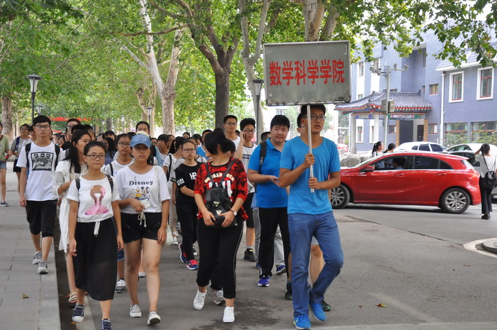 2015级学生中挑选出优秀热心的30人组成“导游组”,每组两到三人,带领新生按照原来制定好的计划游览校园。边走边讲的形式创造出自由和谐的氛围,新生们怀着憧憬和好奇欣赏校园美景、彼此交流。五点半,游览结束,队伍有序带回学院教学楼前并合影留念。