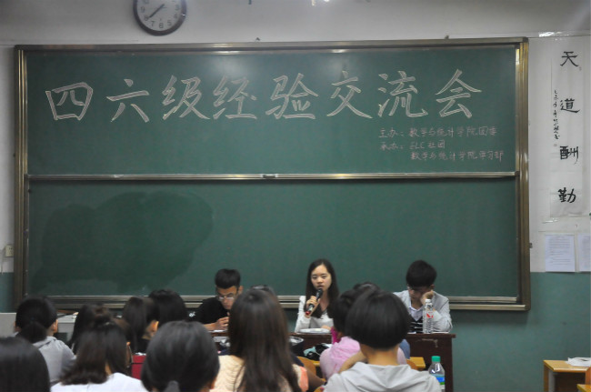 活动伊始,刘晨荣为大家介绍了他的英语学习经验,他以幽默风趣的语言生动形象地讲解了四六级的做题要领,并提出了单词要从现在记起、听力需反复练习、写作一点题二阐述三总结的方法。随后赵月云和蒋雯也分别结合自身学习经验对四六级的复习方法做出明确表述。他们针对本次英语四六级政策的改革,提醒同学们要以端正的态度对待四六级考试,要以轻松的心态坦然面对它,不应把分数看的过重。随着ELC 社团社长王婷的总结发言,本次交流会圆满结束。