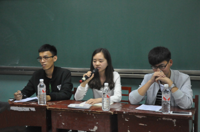 学生会副主席赵月云和英语四级高分获得者蒋雯三位嘉宾担任主讲。