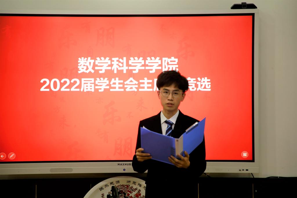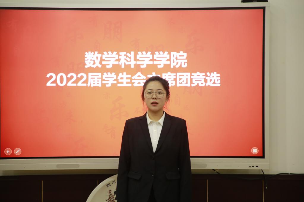 团委于数学楼305室举行学生会主席团换届竞选。学院党委副书记曲凤东,团委书记朱伟卫,辅导员杜晨曦、徐腾飞、韦宁、高思明、吕瑞源以及2021届主席团等参加答辩会。