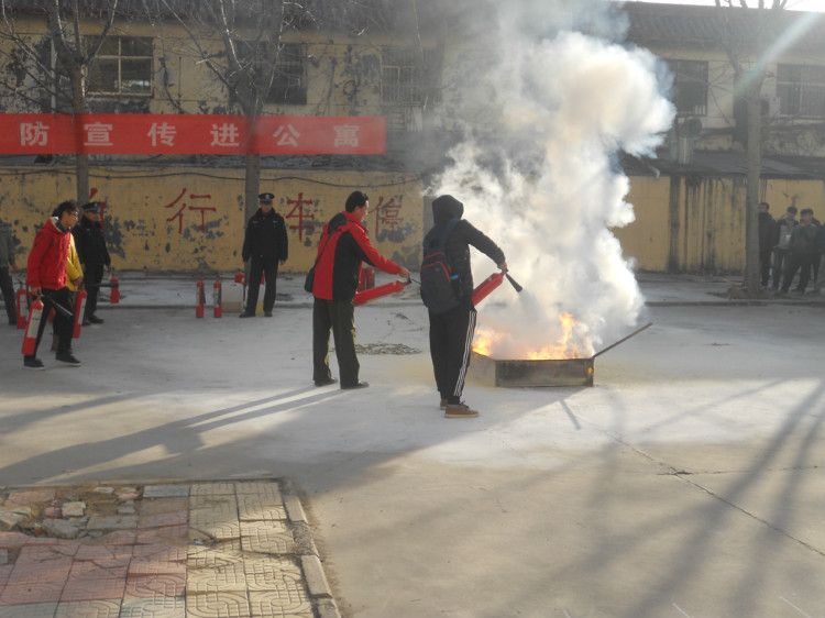 首先,李玉伟的讲话拉开了本次活动的序幕,其点明了当代大学生消防知识缺乏,并着重强调大学生增强紧急事件应急防护自救和逃生能力的重要性。随后,褚明星老师为大家讲解如何正确使用灭火器,同学们认真学习并记录下老师的讲解内容。最后,在消防科的帮助下,同学们开始进行消防演习,现场火势凶猛,同学们的参与积极性高涨,在同学们共同努力下,火势渐小至灭。