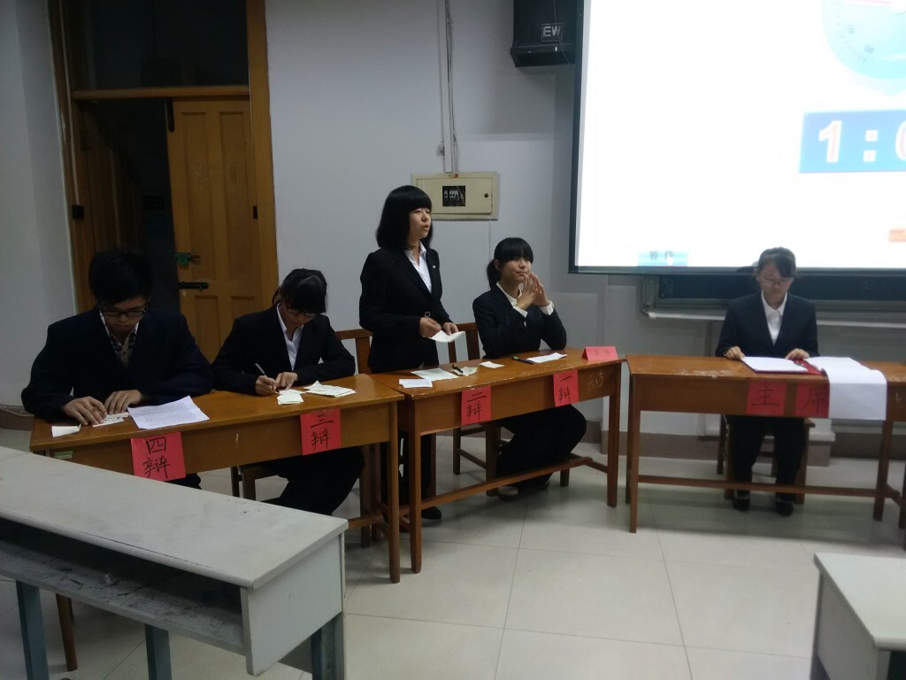 辩论赛有幸邀请到了我校辩论队的优秀队员担任本次比赛的评委,2014级同学们踊跃报名,共有六个班级积极参与到本次比赛中。比赛刚开始就进入了紧张热烈的状态,正反方辩手各抒己见,滔滔不绝,积极紧张地进行着问答,大有誓不言败的气势,双方辩手你来我往、侃侃而谈,场下观众激情澎湃、掌声连连响起。每组选手激烈的比赛后,由评委做详细精彩的点评,以帮助同学们认识不足、发扬优点。本次辩论赛在同学们热烈的掌声中圆满地落下帷幕,最终数二、应统、数三在本次比赛中脱颖而出。