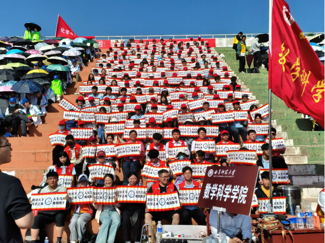 今天虽然是第二天,但是老师和同学们的热情依然高涨,为了给运动员加油打气、活跃现场气氛,学院的辅导员老师们带领大家搞起了歌曲串烧,现场K歌的阵阵欢呼把观众席的热情之火点燃了。老师领唱,同学们跟随老师一齐唱歌,这才是运动会应该有的氛围,提倡的团结协作、互帮互助的“全民狂欢”。现场的气氛一度引得隔壁院系的同学一起加入;同时,赛场上的运动员也依旧斗志昂扬,不断超越自己、突破自己,从成绩中也能看出大家顽强拼搏,决不放弃的精神和在长久训练下的强大实力。