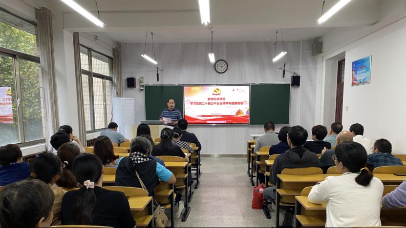 刘进结合学院实际工作进行宣讲并提出要求,一是要提高思想认识,加强政治建设,把深入学习宣传贯彻全会精神作为当前和今后一个时期的重大政治任务,深刻认识党的二十届三中全会的重大意义,准确理解全会《决定》作出的系列重大决策部署。二是要坚持深化改革,推动高质量发展,将学习党的二十届三中全会精神与学院正在进行的巡察整改“后半篇文章”相结合,全面推进从严治党,深化学院各项事业改革,不断增强学院党组织的政治功能和组织功能。三是要强化责任担当,推动工作创新,结合学院人才培养、学科建设、教学科研、人才队伍建设等工作实际,全力以赴抓好全会精神贯彻落实,对标山东省高水平学科建设年度任务和总体建设目标,充分发挥基层党组织的先锋模范作用,以更加昂扬的斗志和务实的作风投入到学院工作中去,持续推动学院各项工作的高质量发展。