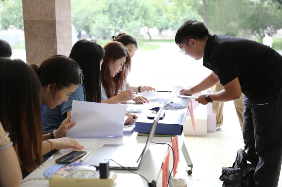 迎新当日,报到大厅值班党员有序协助完成新生身份核验、材料收取等环节;办公室值班党员开设新生党员材料收取窗口,核对收取党组织材料,并主动向新生党员展开深度交流,介绍学院在70周年院庆期间精心策划的党建特色活动,讲解院史长廊与学科成果展的核心亮点,以鲜活的学院发展历程与学科实力,助力其快速融入学院大家庭,以昂扬姿态开启新阶段的学习与成长。
