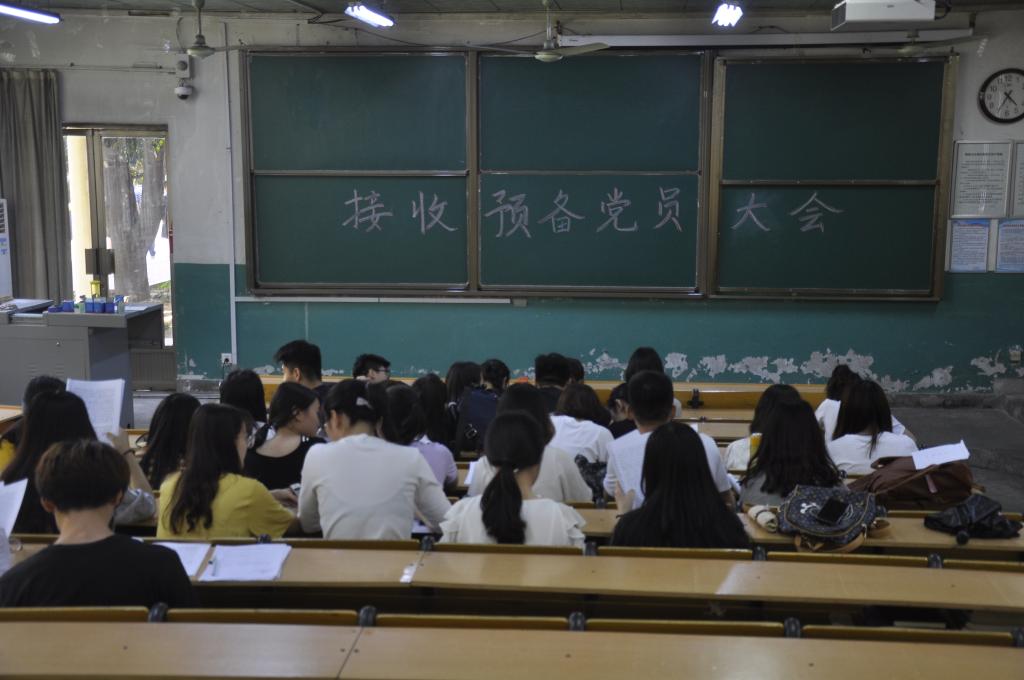 接收预备党员大会在数学楼101教室举行。学院党委副书记刘建新,本科生党支部书记朱伟卫、组织委员郅艳梅、辅导员张惠以及本科生党支部正式党员、预备党员出席了本次大会。会议由朱伟卫主持。