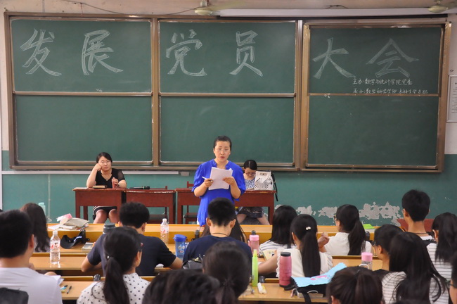 本科生正式党员和预备党员的表现提出了表扬,并勉励大家再接再厉,时刻做到以党员的标准严格要求自己。会议秉承着“公平、公正、公开”的态度,严格按照发展党员的正式程序进行。八位党员发展对象按照顺序分别宣读了入党志愿书,辅导员老师和入党介绍人也分别对发展对象的培养考察情况做了详细、全面的介绍,在肯定他们优点的同时也指出存在的问题和不足,并对其能否入党表明态度。经过与会党员的无记名投票,最终八位发展对象均被顺利接收。