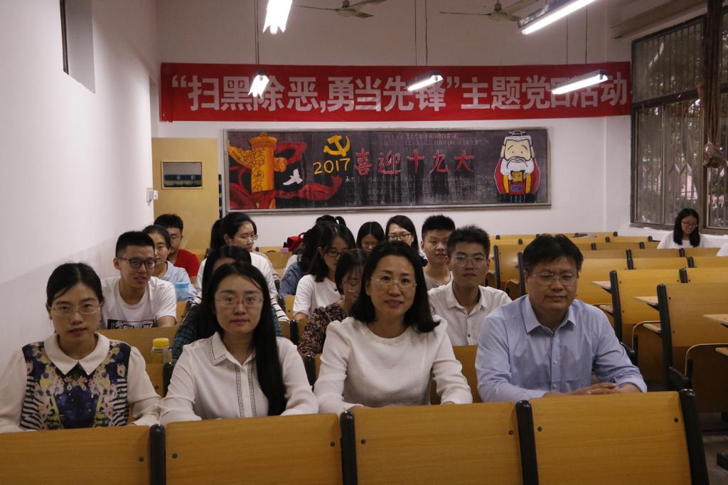 特组织全体本科生党员,开展了本次"扫黑除恶,勇当先锋"主题党日活动,学院党委副书记刘建新,团委书记朱伟卫,辅导员郅艳梅、张惠出席并参与了此次活动。