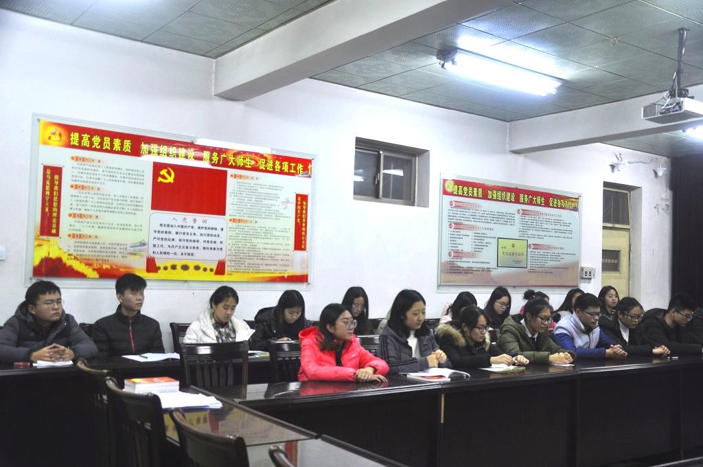 12月19日下午,本科生党支部接收预备党员大会在数学教学楼304教室成功召开。党委副书记刘建新同志、本科生党支部书记朱伟卫同志、副书记杜晨曦同志、组织委员郅艳梅同志以及全体学生党员和发展对象参加了此次大会。会议由朱伟卫同志主持。