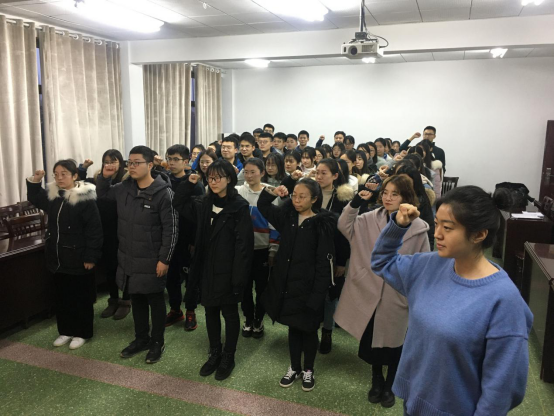 宣誓活动在庄严的《国际歌》中拉开帷幕。曲凤东指出,预备党员必须面向党旗进行入党宣誓,这是党章中明确规定的程序。党旗代表着党,面对党旗进行入党宣誓,是党员对党表示自愿承担政治责任和组织责任的决心。随后,全体党员高举右手,紧握拳头,在领誓人的领诵之下,庄严的面向党旗进行宣誓,立下了“我志愿加入中国共产党……随时准备为党和人民牺牲一切,永不叛党”的神圣誓言,嘹亮的誓言在教室中引发阵阵回响,彰显出91黑料