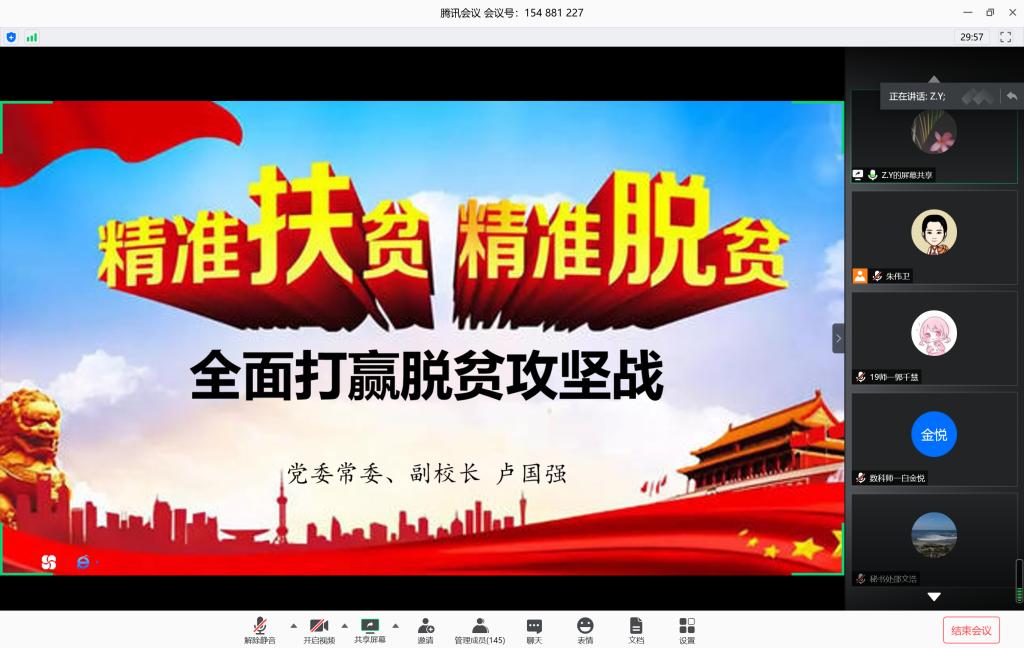 利用腾讯会议顺利举办大学生线上思政课暨本科生党支部、研究生党支部联合主题党日活动,线上思政课由学校党委常委、副校长卢国强主讲,活动由91黑料