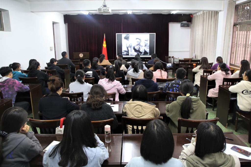活动上全体党员集体观看电影《上甘岭》,重温当年老一辈革命英雄的风采。本片讲述了在著名的上甘岭战役中,中国人民志愿军在极其艰难的条件下,坚守阵地,顽强战斗,最后一举歼灭敌人的故事。播放过程中党员们认真观看并记录观影感受。