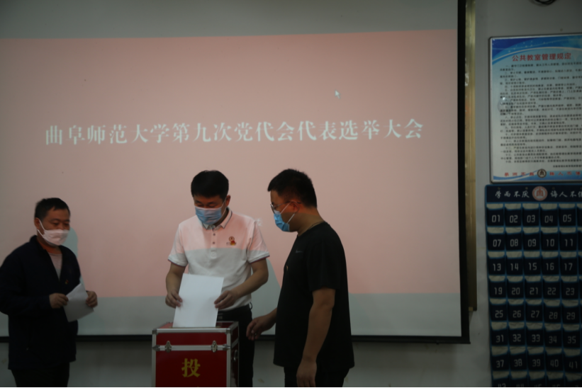 讯(通讯员:桑鲁豫 摄影:田青雨)2022年9月4日上午10时,学院党委在101室召开曲阜师范大学第九次党代会代表选举大会。大会由学院党委副书记曲凤东主持。全体在校师生党员参加会议。