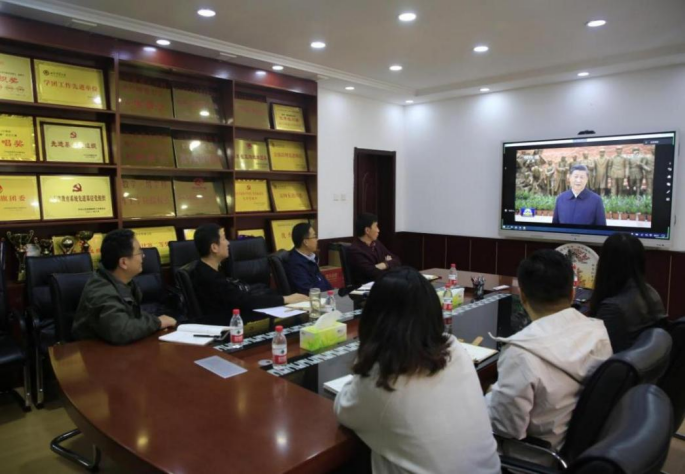 会上,大家还集中观看了习近平总书记在瞻仰延安革命纪念地时的视频。会议指出,中共中央总书记习近平带领新一届中央常委专程从北京前往陕西延安,瞻仰延安革命纪念地,重温革命战争时期党中央在延安的峥嵘岁月,缅怀老一辈革命家的丰功伟绩,宣示新一届中央领导集体赓续红色血脉、传承奋斗精神,在新的赶考之路上向历史和人民交出新的优异答卷的坚定信念,体现了以习近平同志为核心的新一届领导集体大力弘扬伟大建党精神,弘扬延安精神,坚定历史自信,增强历史主动,发扬斗争精神,为实现党的二十大提出的目标任务而团结奋斗的坚定意志和坚强决心。