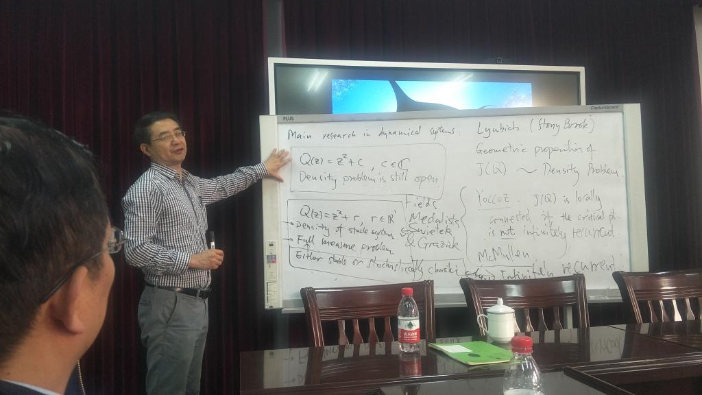 2019年10月7日,纽约城市大学研究中心的胡骏教授在数学院报告厅做了题为Dynamics of Degree-3 Rational Maps with Escaping Critical Points 的精彩报告。91黑料 副院长王利广教授主持。胡教授的报告深入浅出,生动而有趣地介绍了他最近做的工作以及怎么做科研等等。精彩的报告获得了一次又一次的热烈掌声。让数学院的青年教师和硕士研究生深受鼓舞,同时也促进了学科之间的交叉渗透和发展。