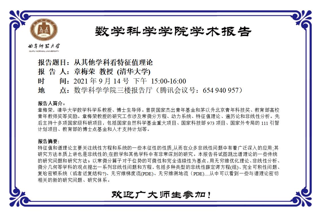 【9月14日】章梅荣教授学术报告